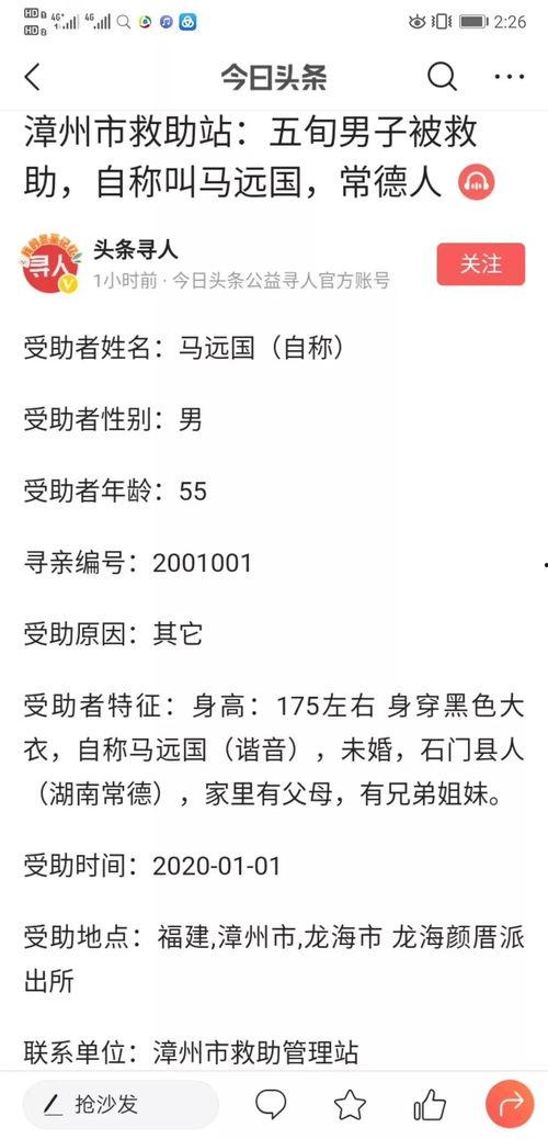 在这个信息爆炸的时代,我们每天都被各种新闻包围,但有些故事,却像一颗颗璀璨的明珠,在喧嚣中熠熠生辉。今天,我要讲述的,就是这样一个充满温情和感动的真实故事——头条寻人马远国。